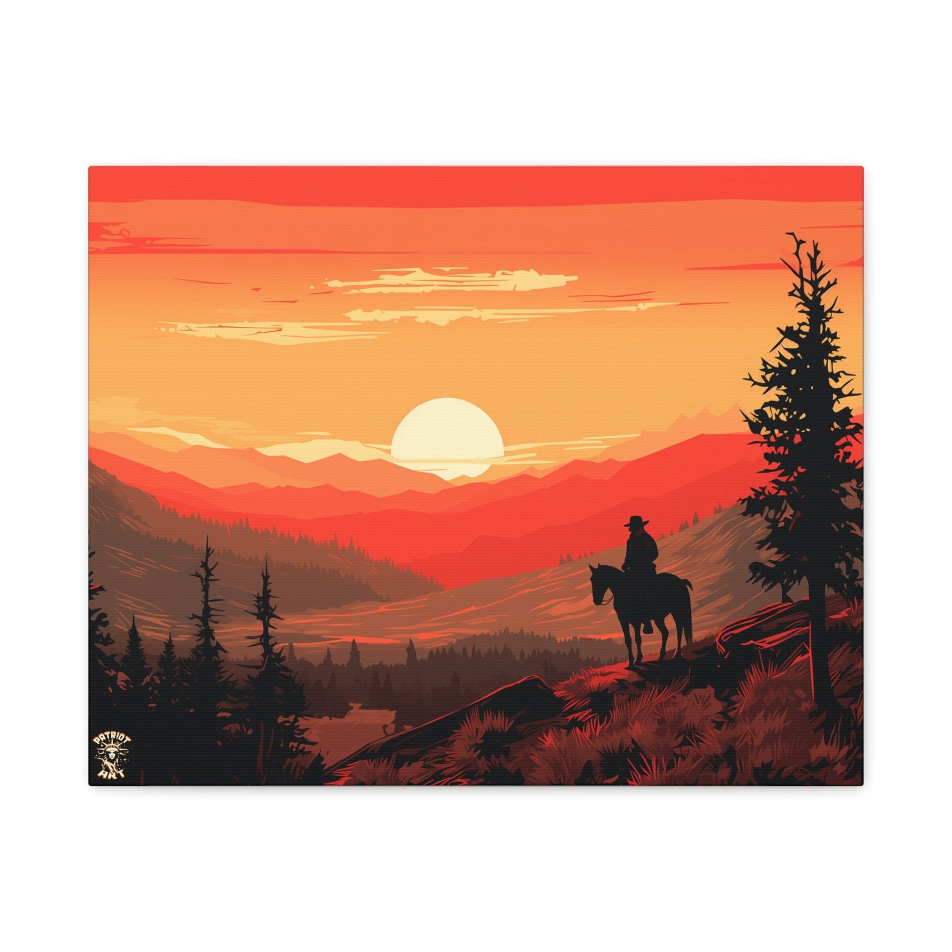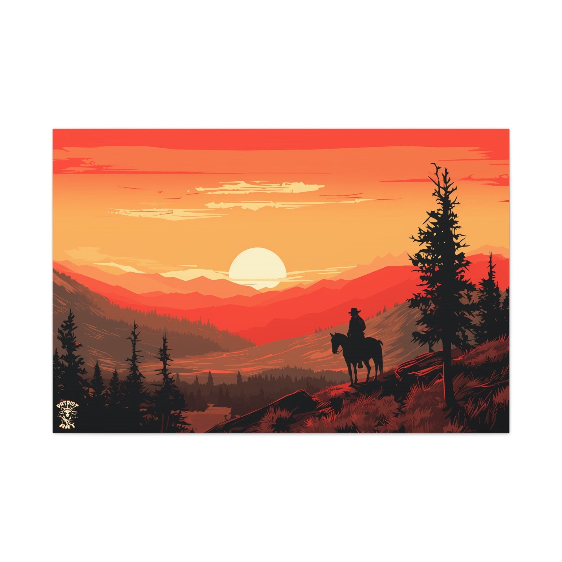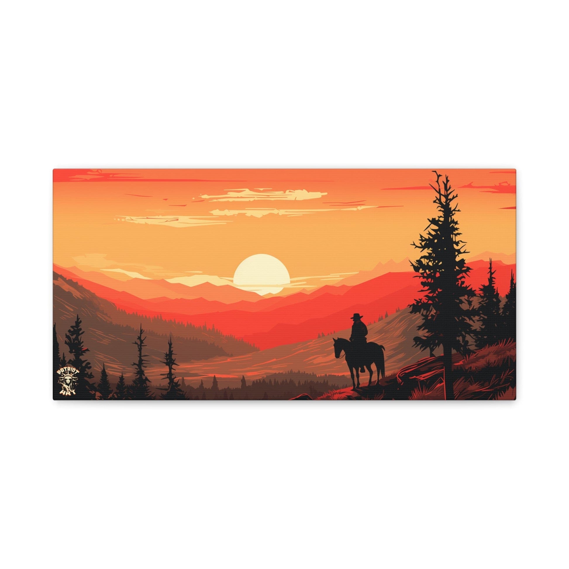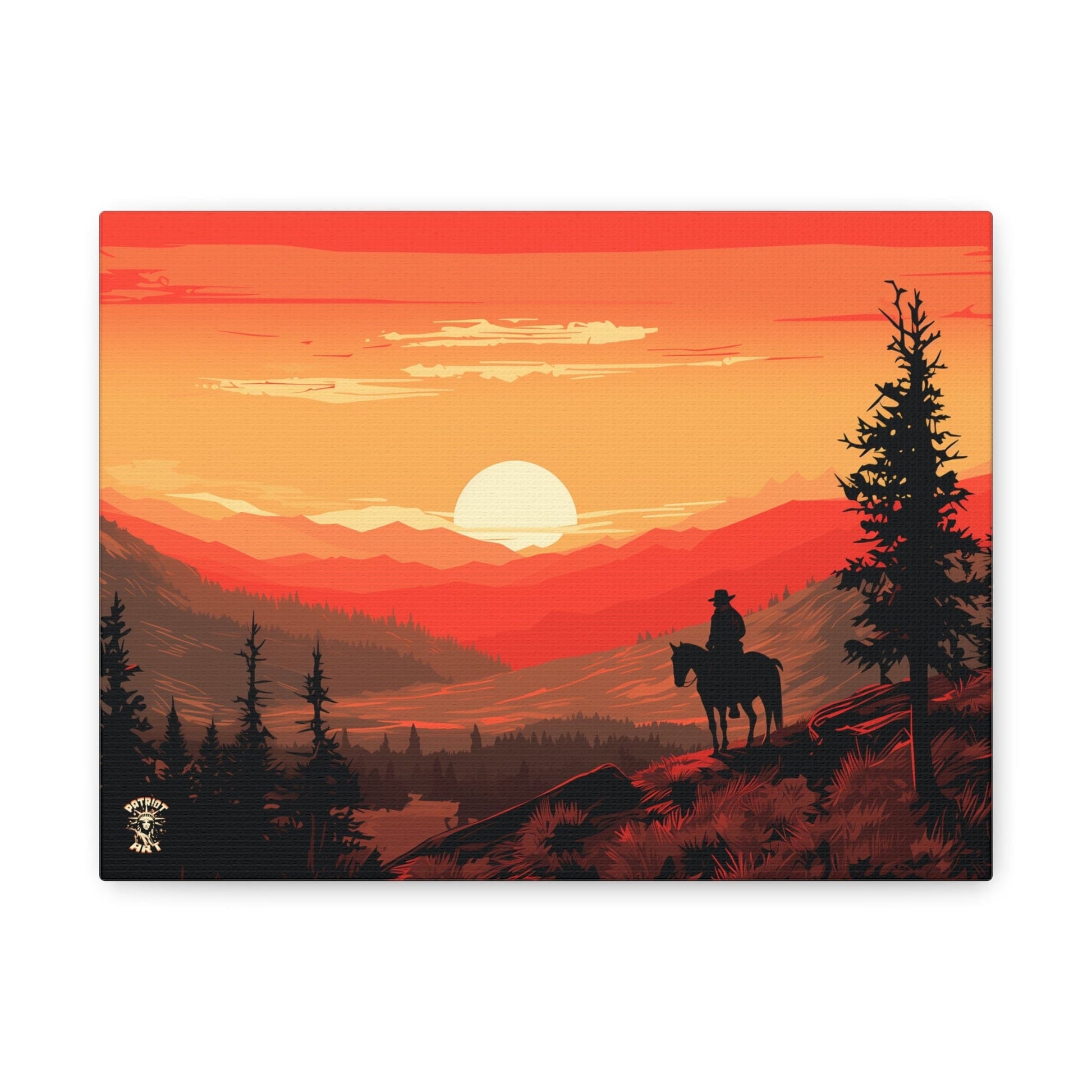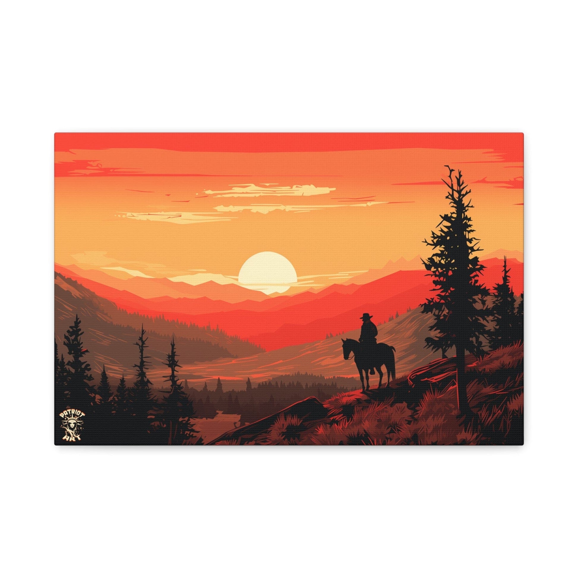 Discover the majestic solitude of the American West with "The Lone Ranger" 🤠, a striking piece from our American Frontier Series. This elegant matte canvas portrays the timeless saga of a solitary figure against the fiery canvas of a frontier dusk, a scene that stirs the soul with its serene grandeur. 🏞️