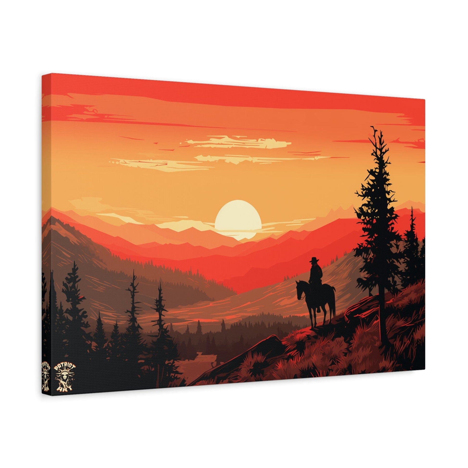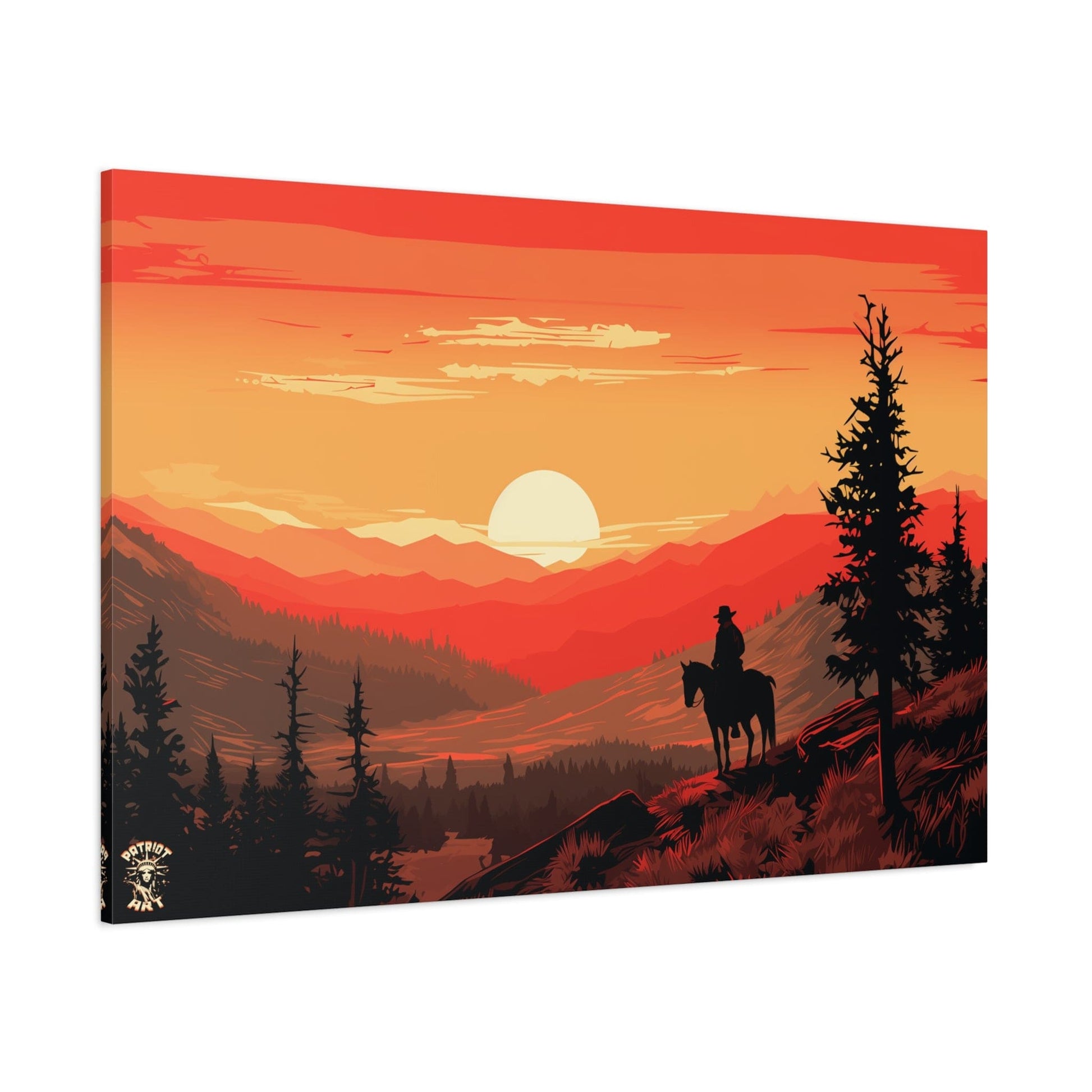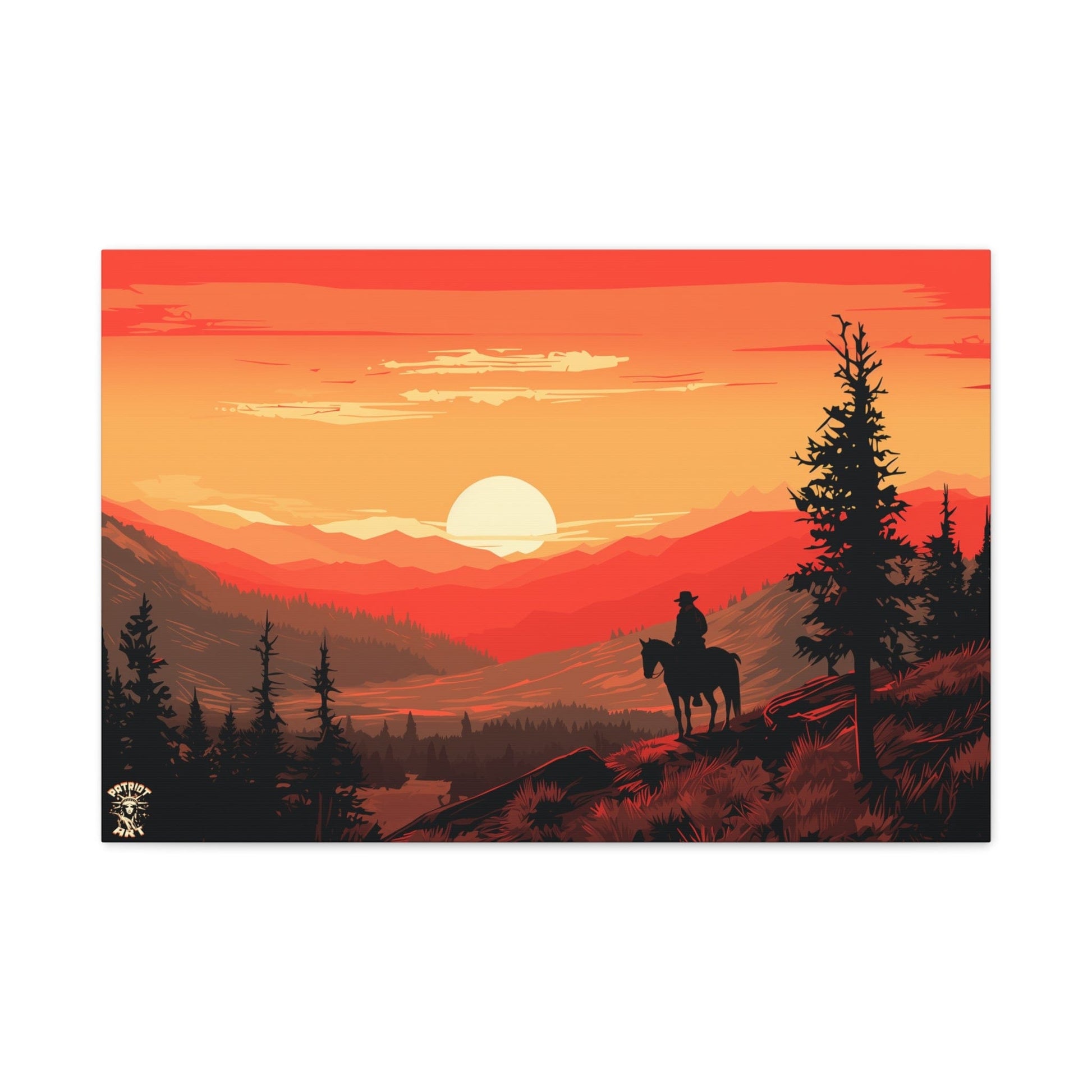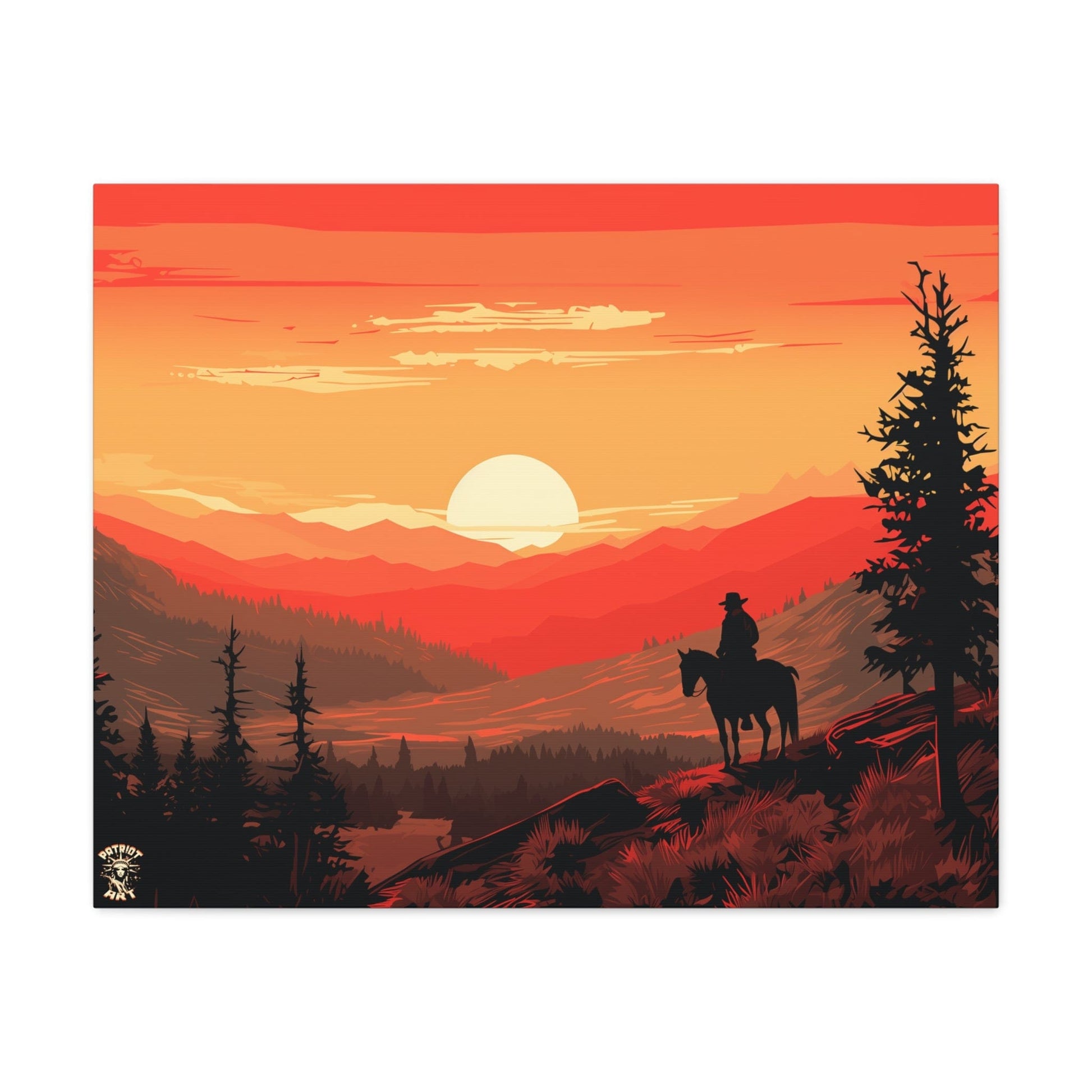 Discover the majestic solitude of the American West with "The Lone Ranger" 🤠, a striking piece from our American Frontier Series. This elegant matte canvas portrays the timeless saga of a solitary figure against the fiery canvas of a frontier dusk, a scene that stirs the soul with its serene grandeur. 🏞️