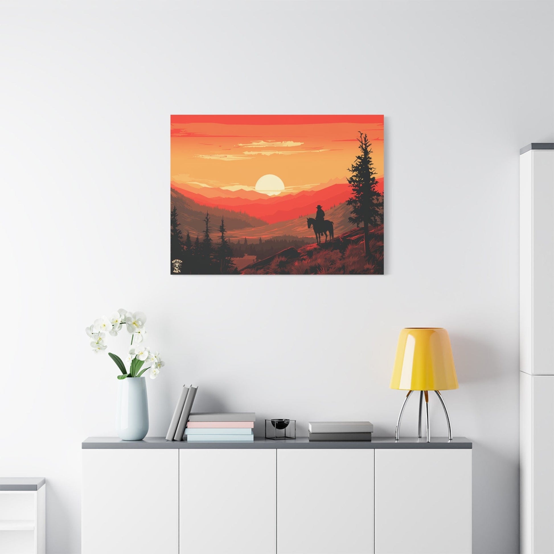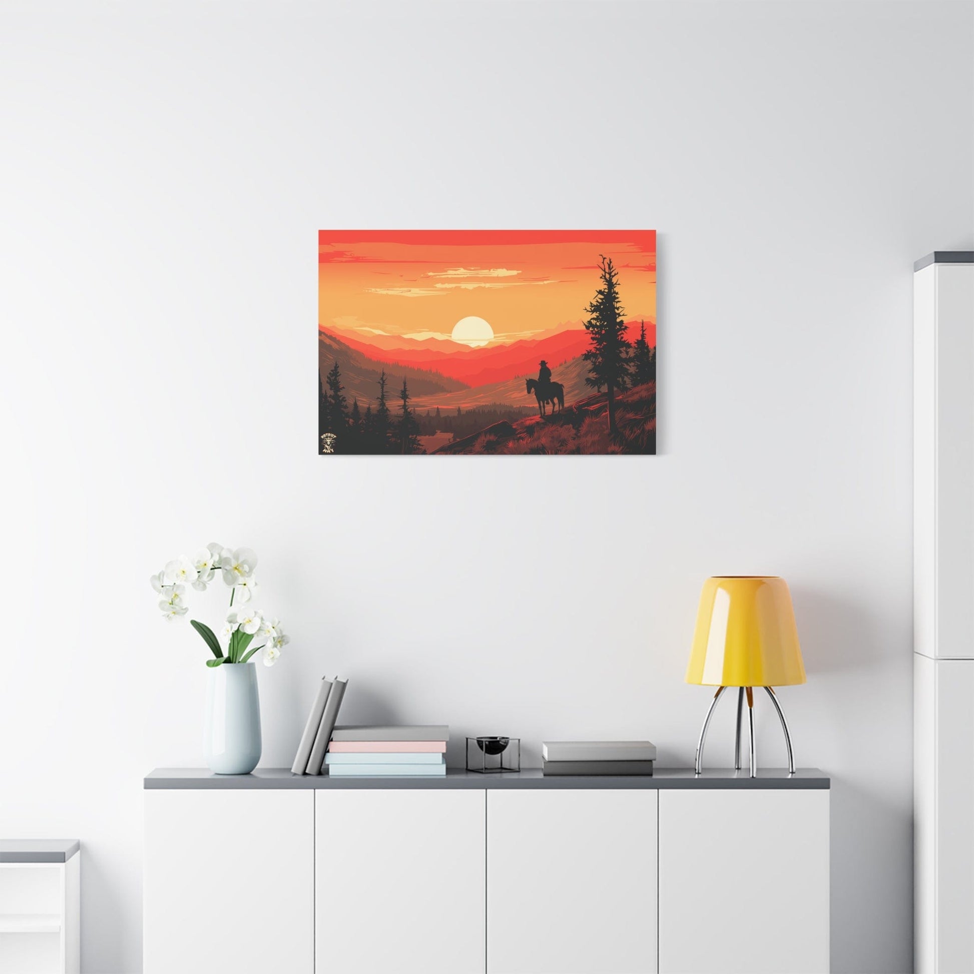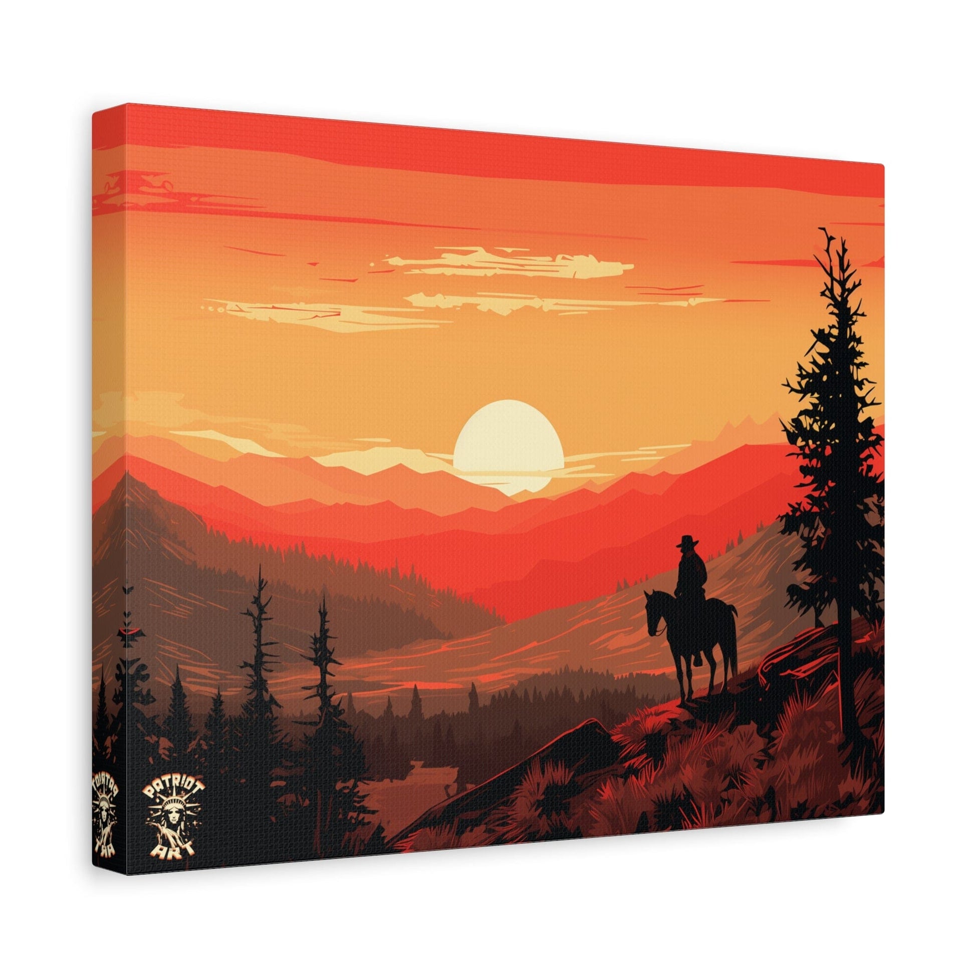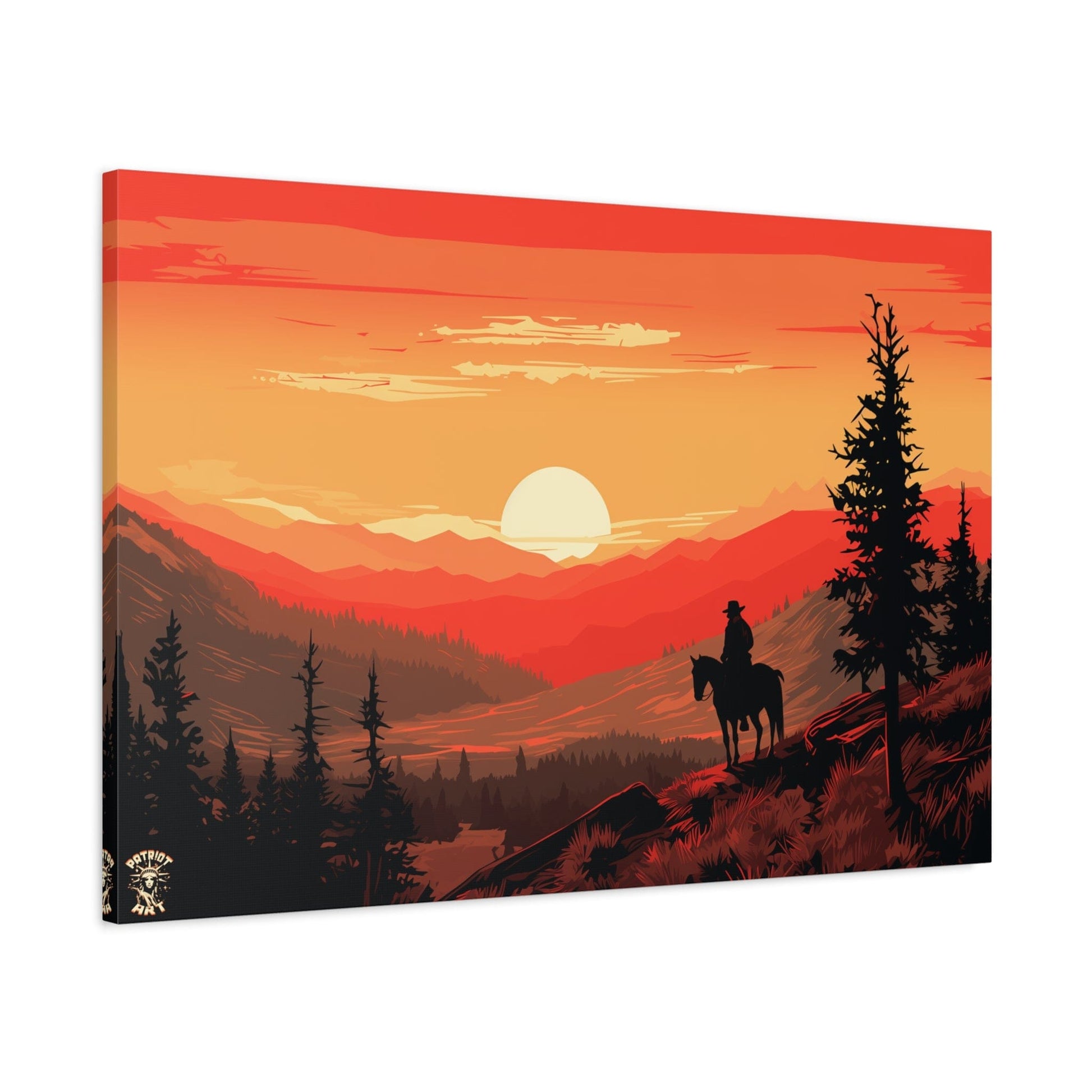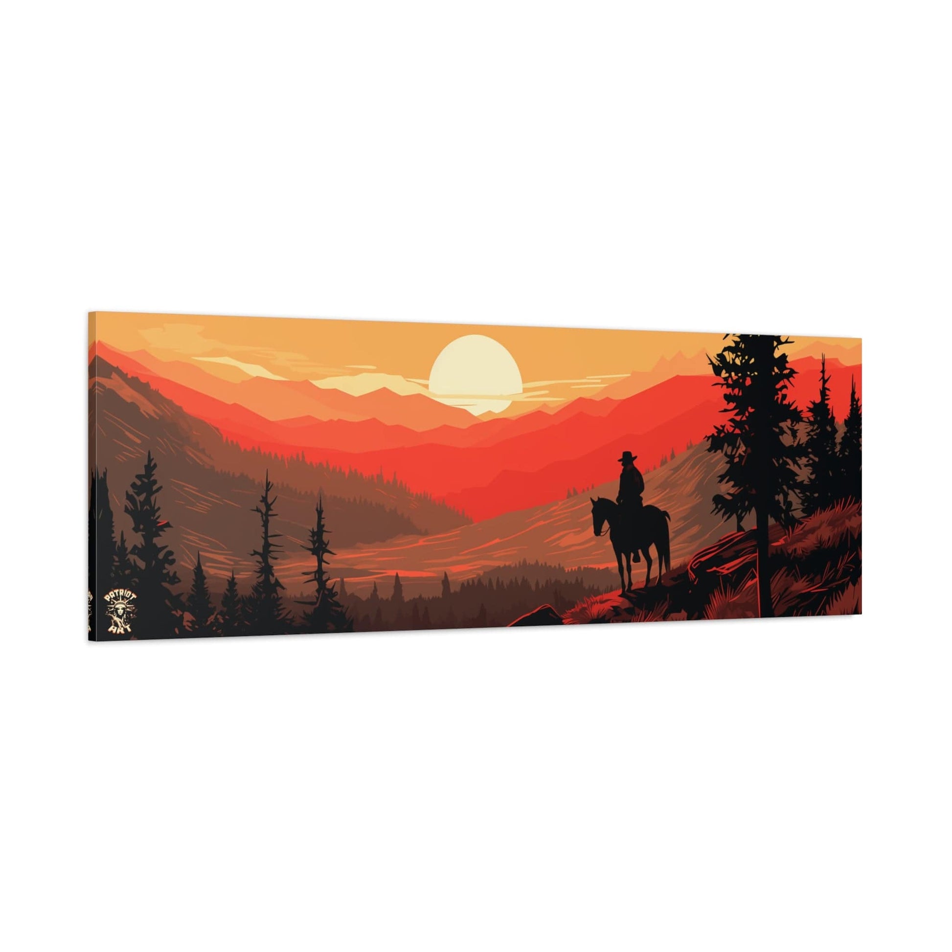 Discover the majestic solitude of the American West with "The Lone Ranger" 🤠, a striking piece from our American Frontier Series. This elegant matte canvas portrays the timeless saga of a solitary figure against the fiery canvas of a frontier dusk, a scene that stirs the soul with its serene grandeur. 🏞️