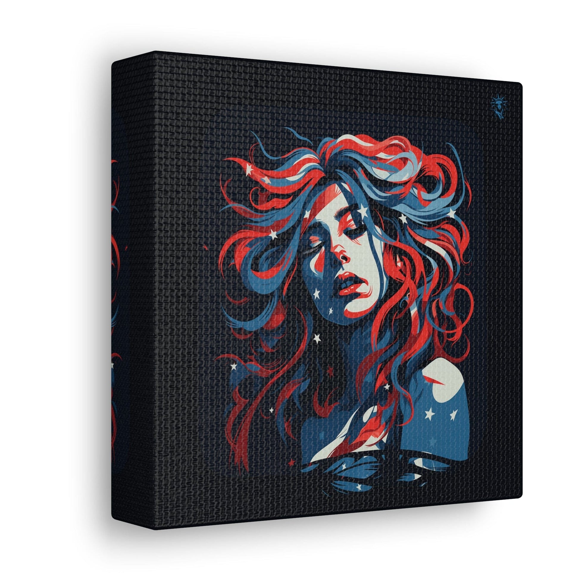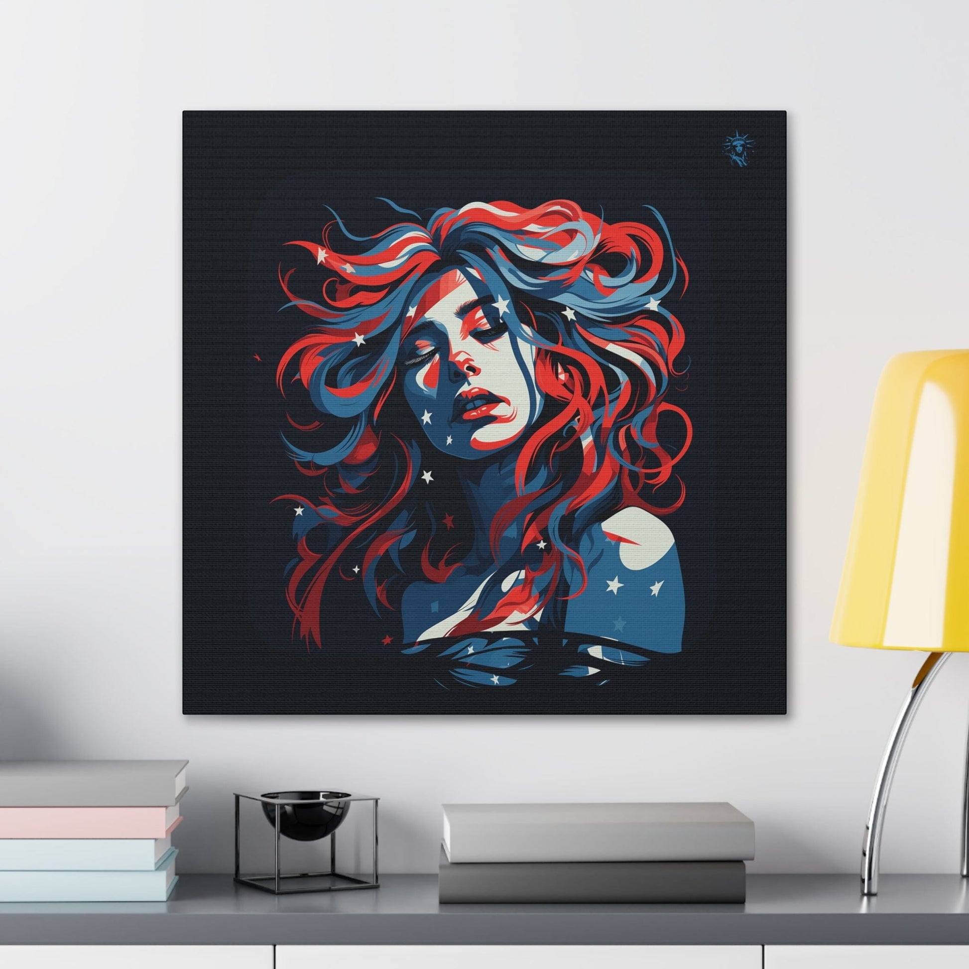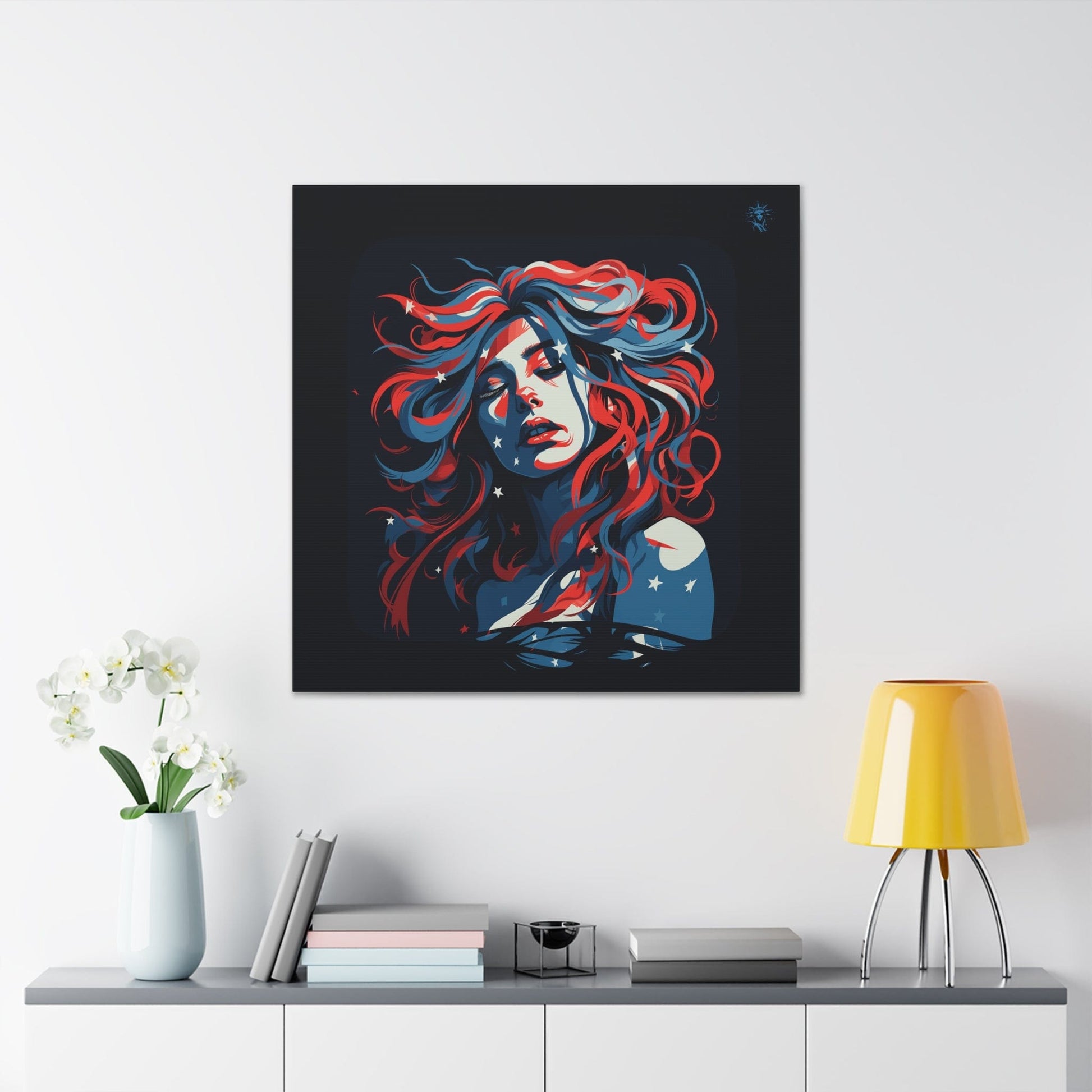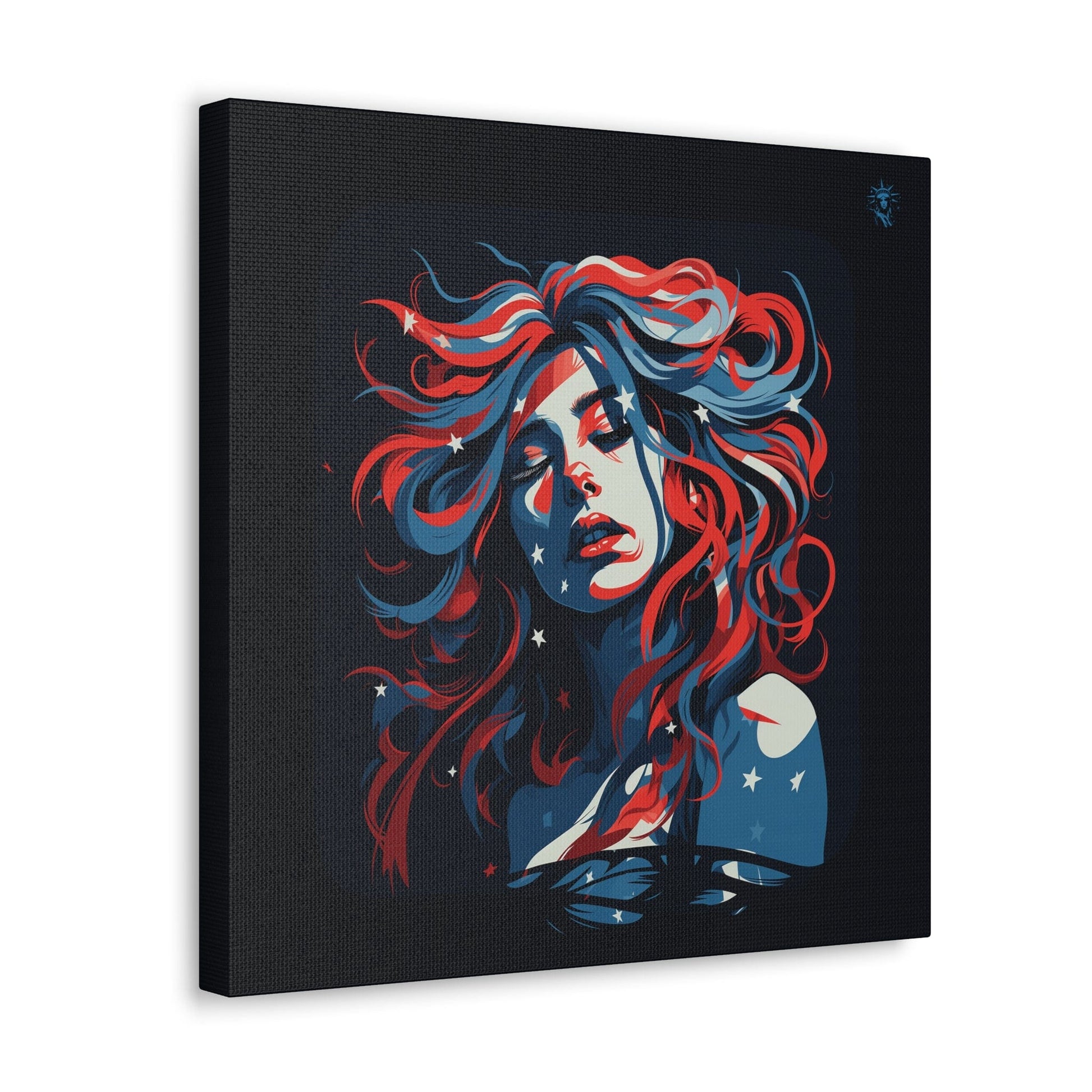 Elegant Tribute to American Women: Our "American Woman 1" framed canvas art from the America Woman Series beautifully embodies the strength and grace of American women. The premium matte canvas enhances the detailed American Woman design, mounted in a sleek black frame for a sophisticated touch.
