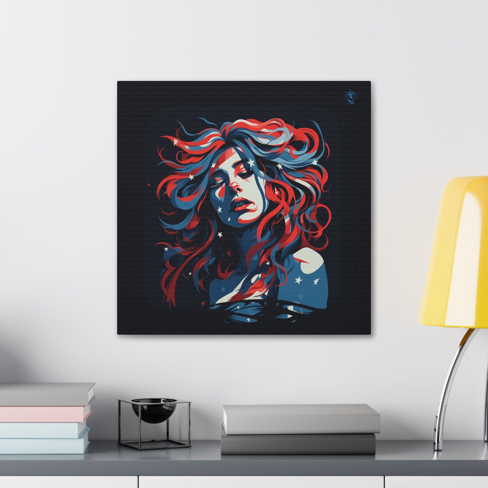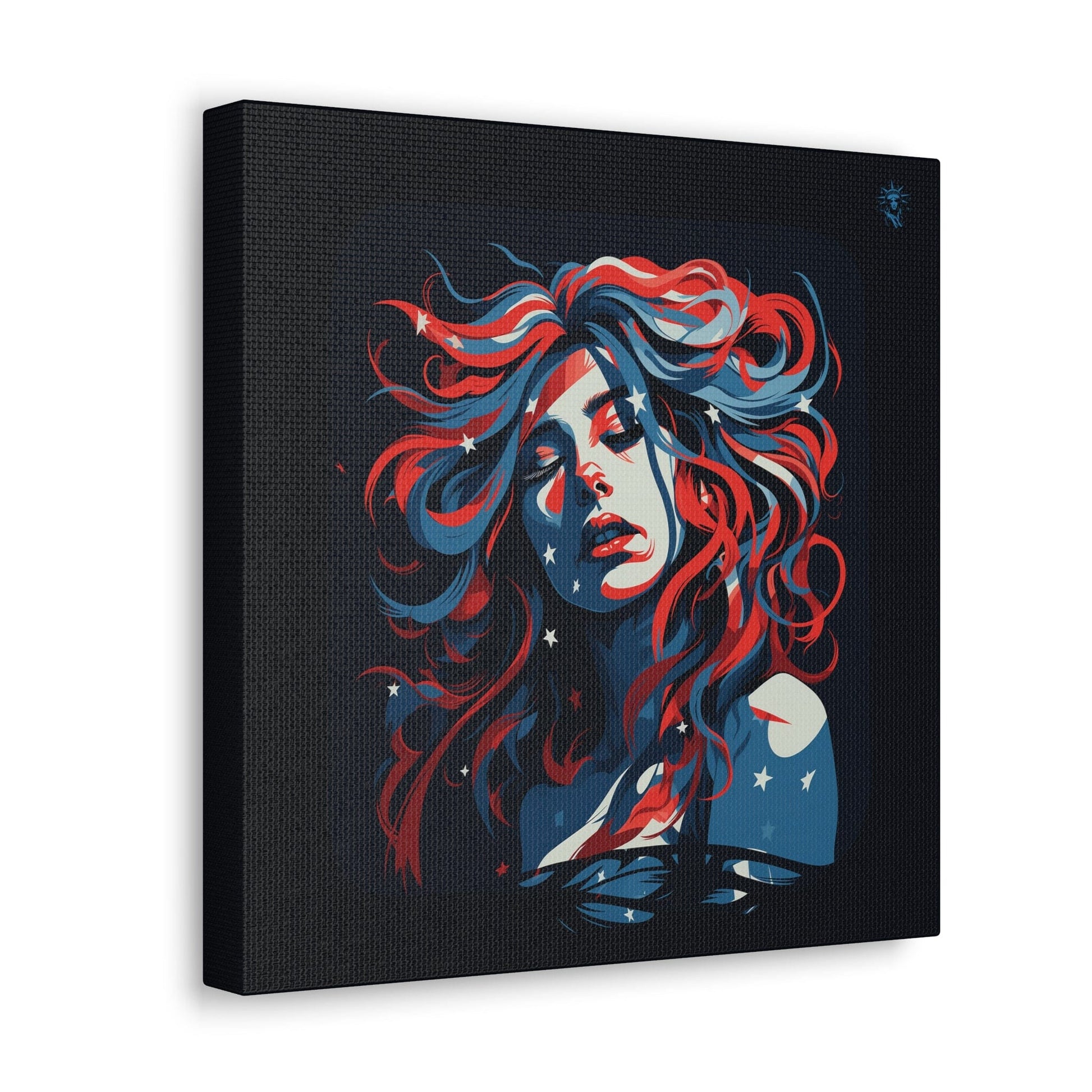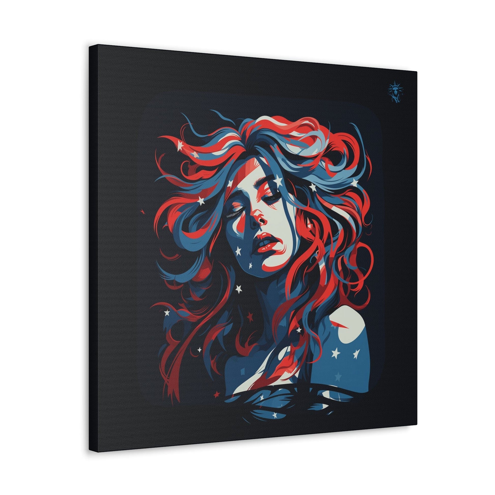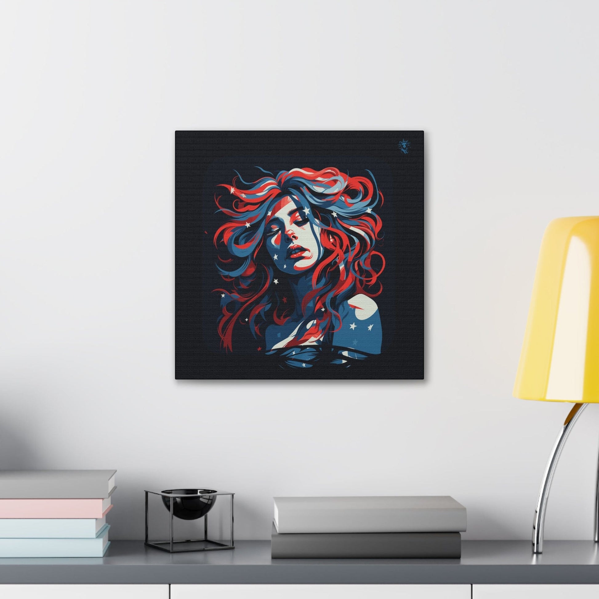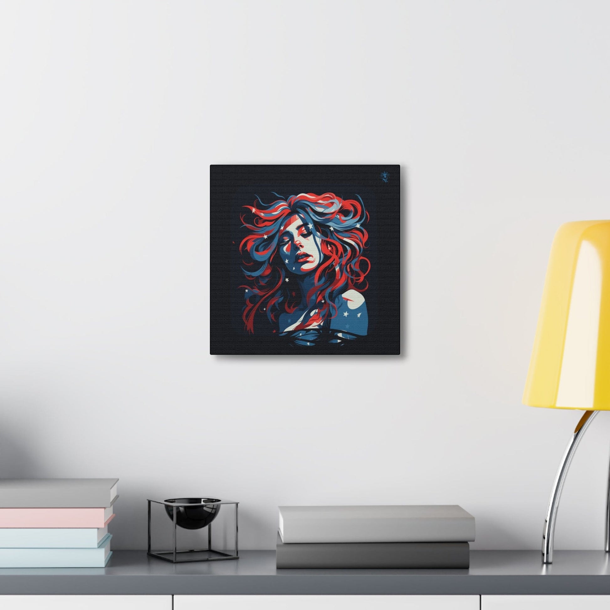 Elegant Tribute to American Women: Our "American Woman 1" framed canvas art from the America Woman Series beautifully embodies the strength and grace of American women. The premium matte canvas enhances the detailed American Woman design, mounted in a sleek black frame for a sophisticated touch.