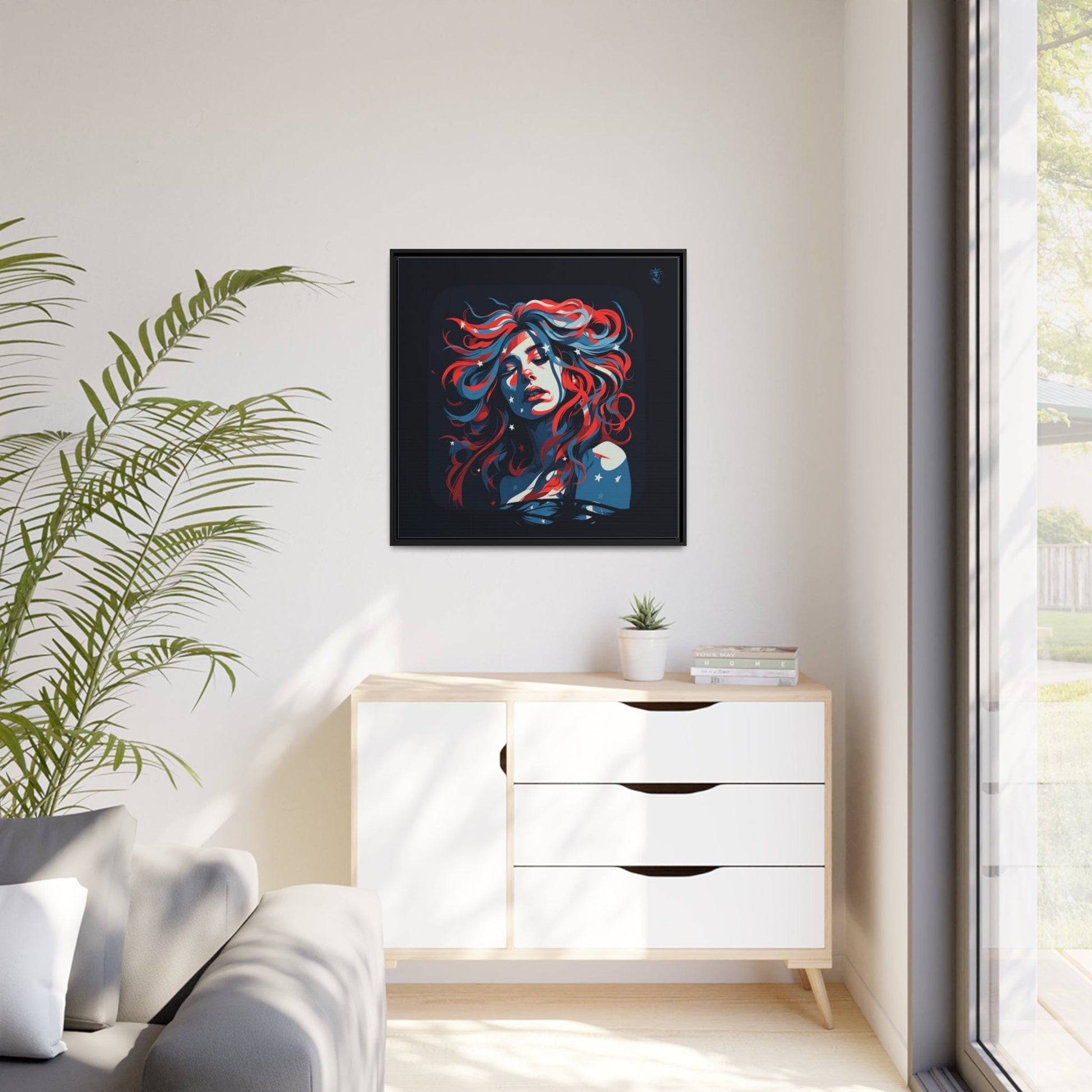 Showcase American Women's Strength Adorn your space with "American Women Matte Canvas," part of our American Woman Series, featuring a black pinewood frame for a touch of elegance.