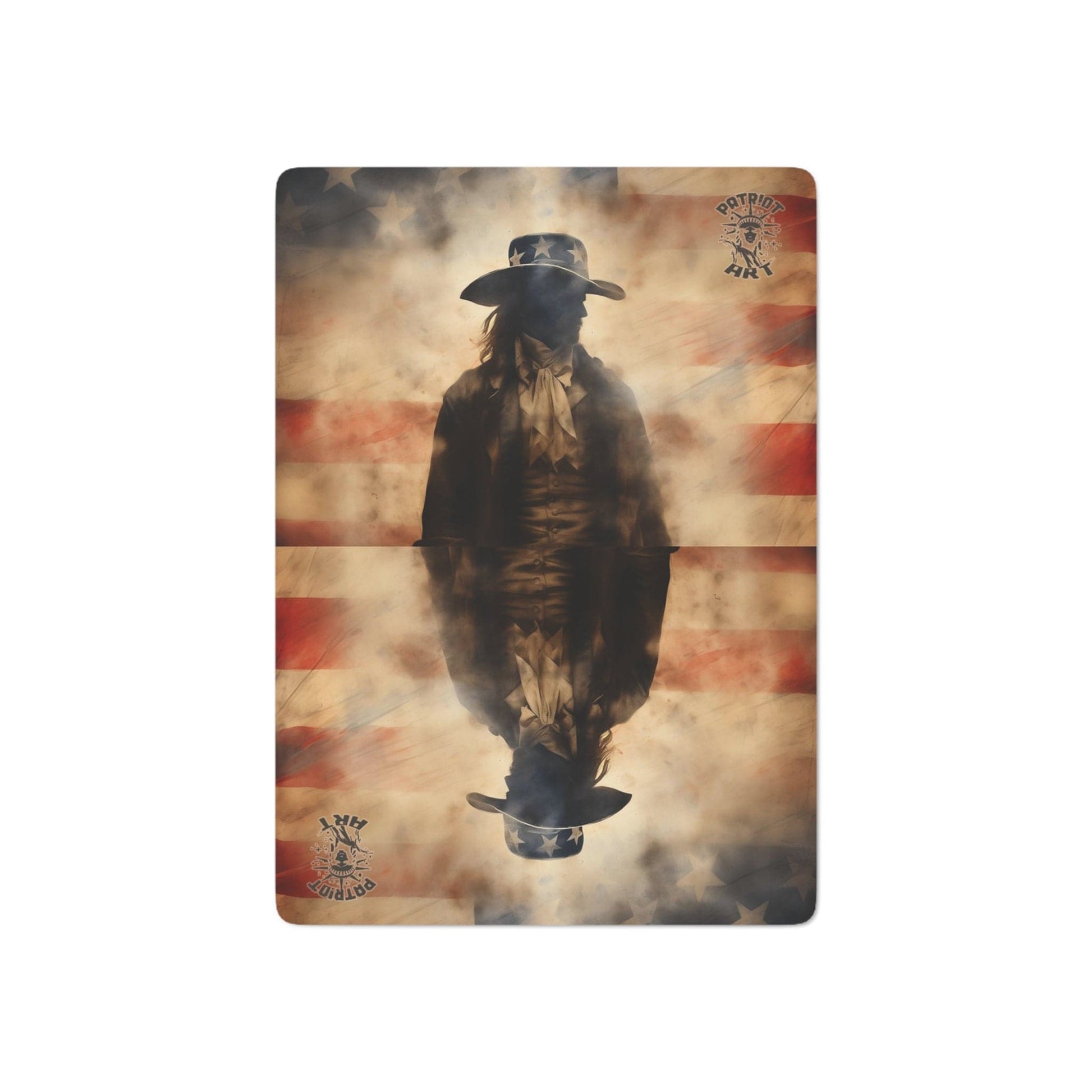Shuffle the deck of history with "Echoes of Freedom" poker cards from The Spirit of 1776 Series. 🎴 Each card is a canvas, featuring the grunge-infused hues of the American flag and the silhouette of a stoic figure embodying the fervor that birthed a nation. 🇺🇸