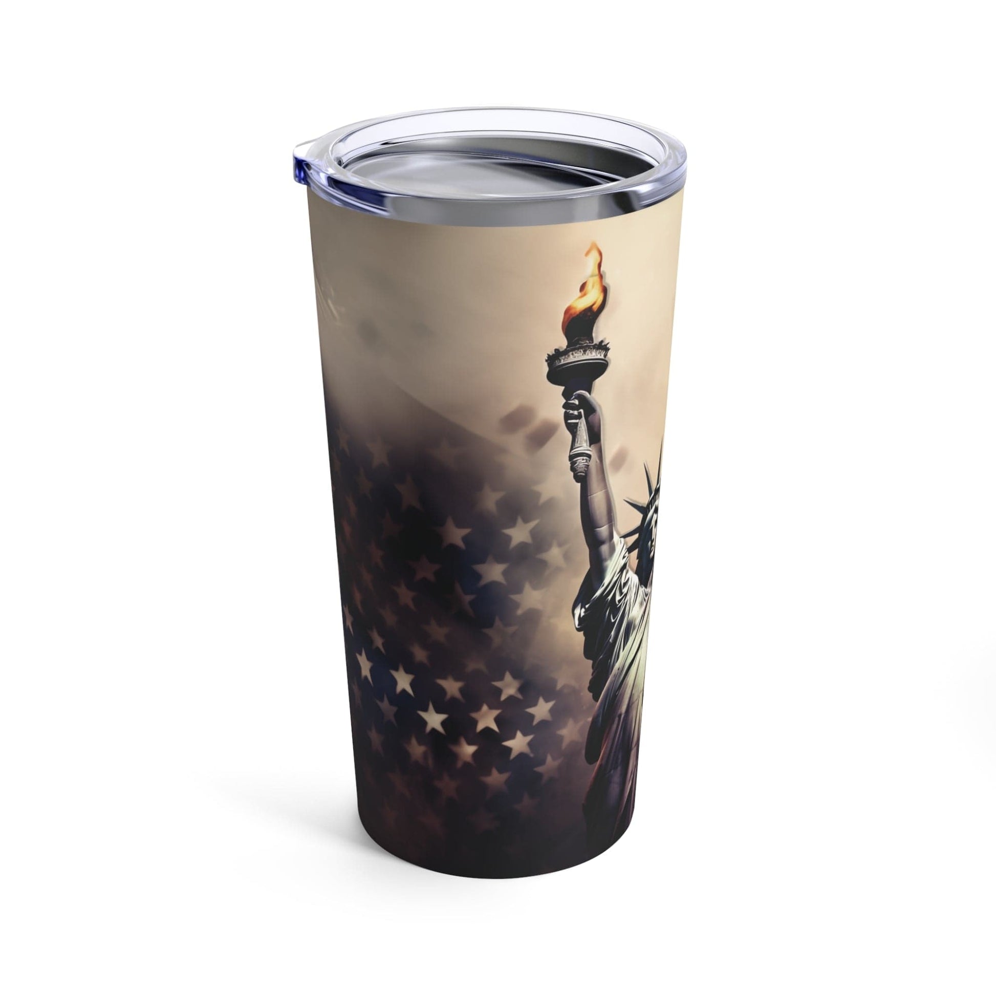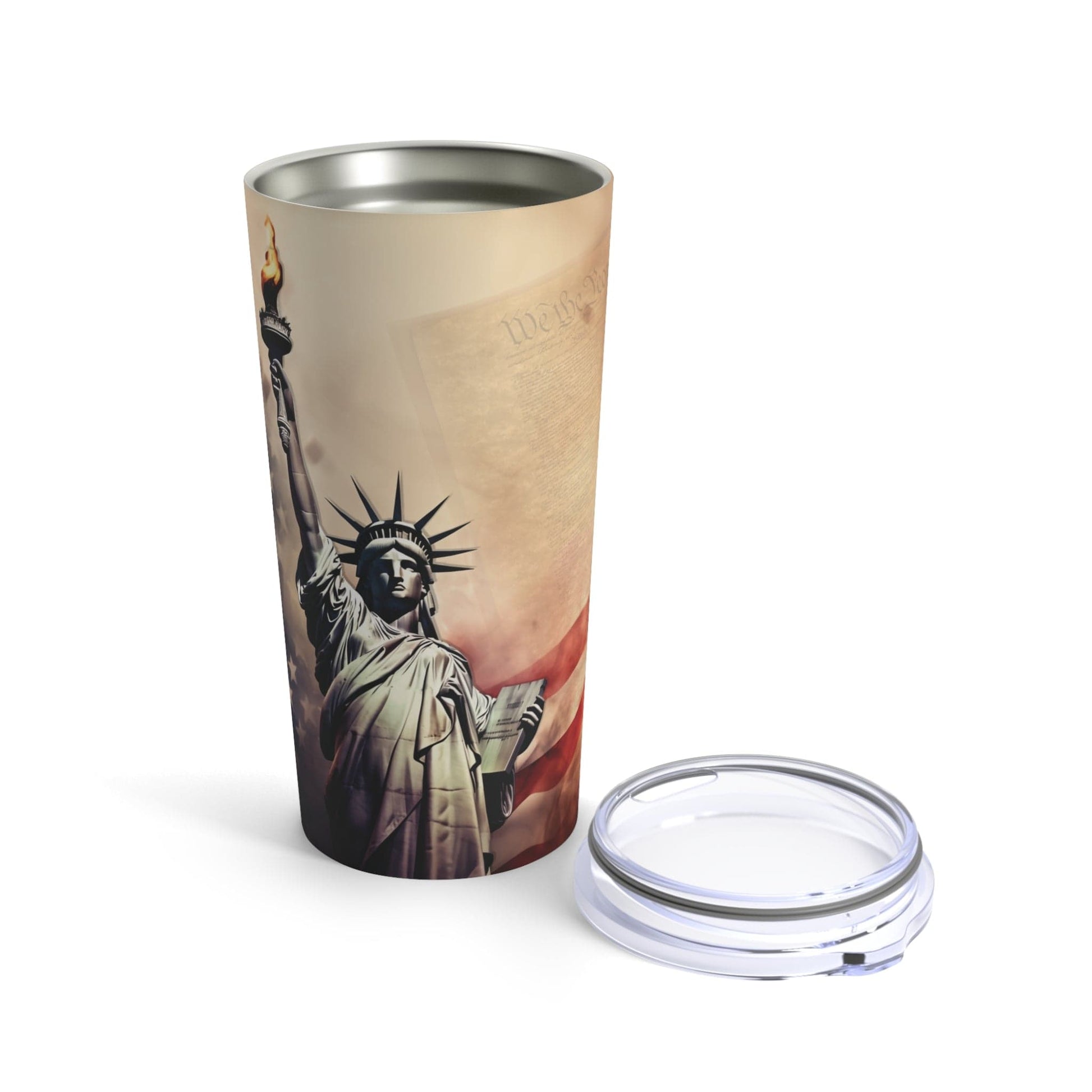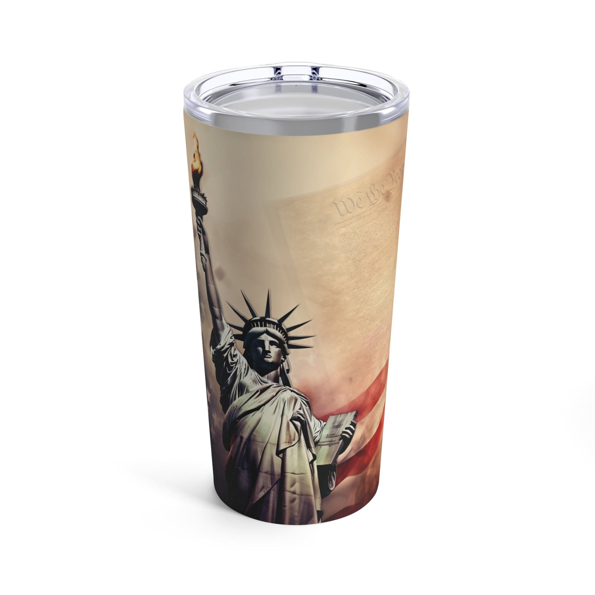 American Heritage in Every Sip Experience the essence of the USA with this beautifully crafted 20oz tumbler, showcasing the Statue of Liberty, the Declaration of Independence, and the American flag in an AI-enhanced design.