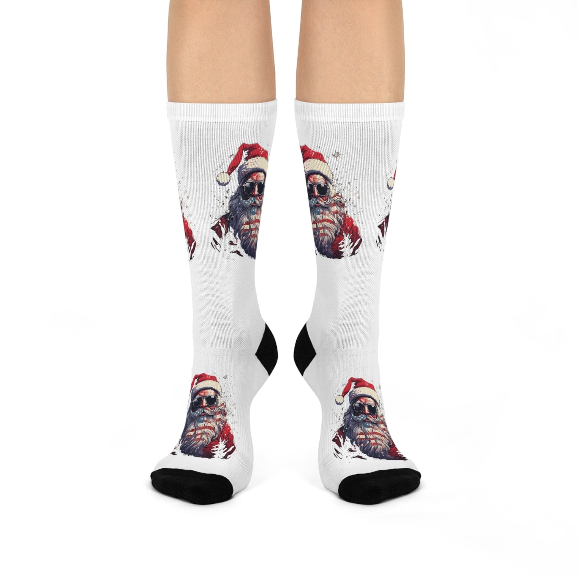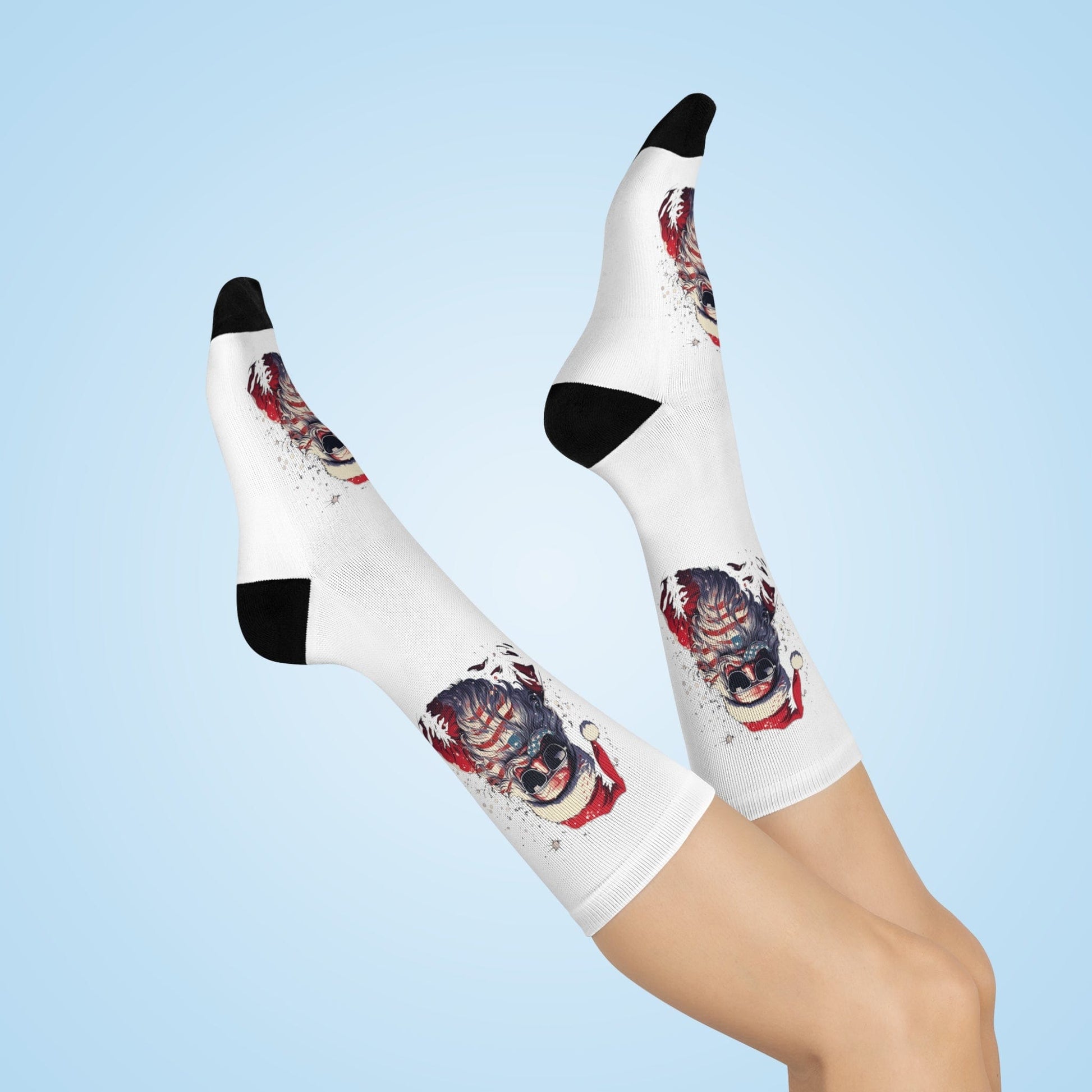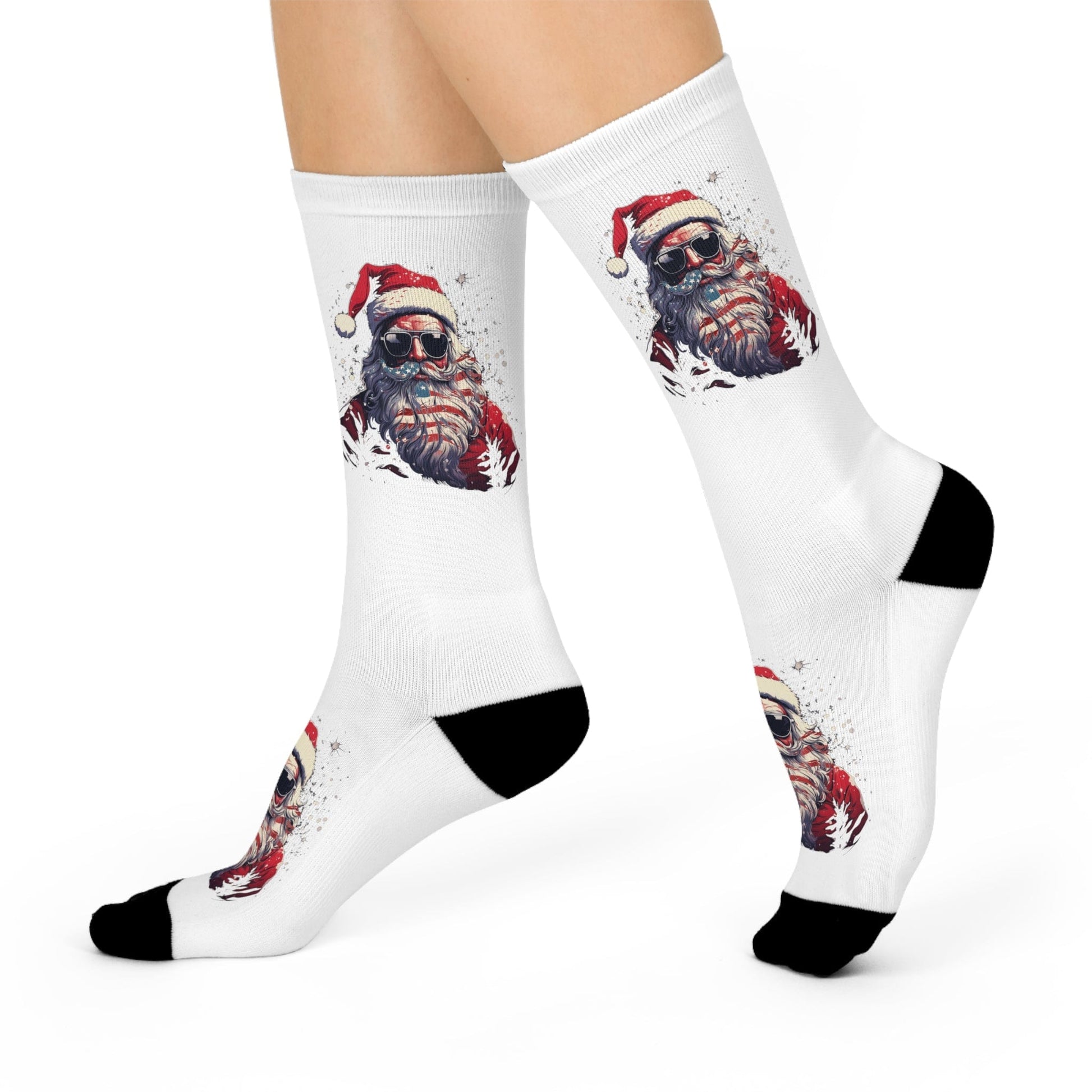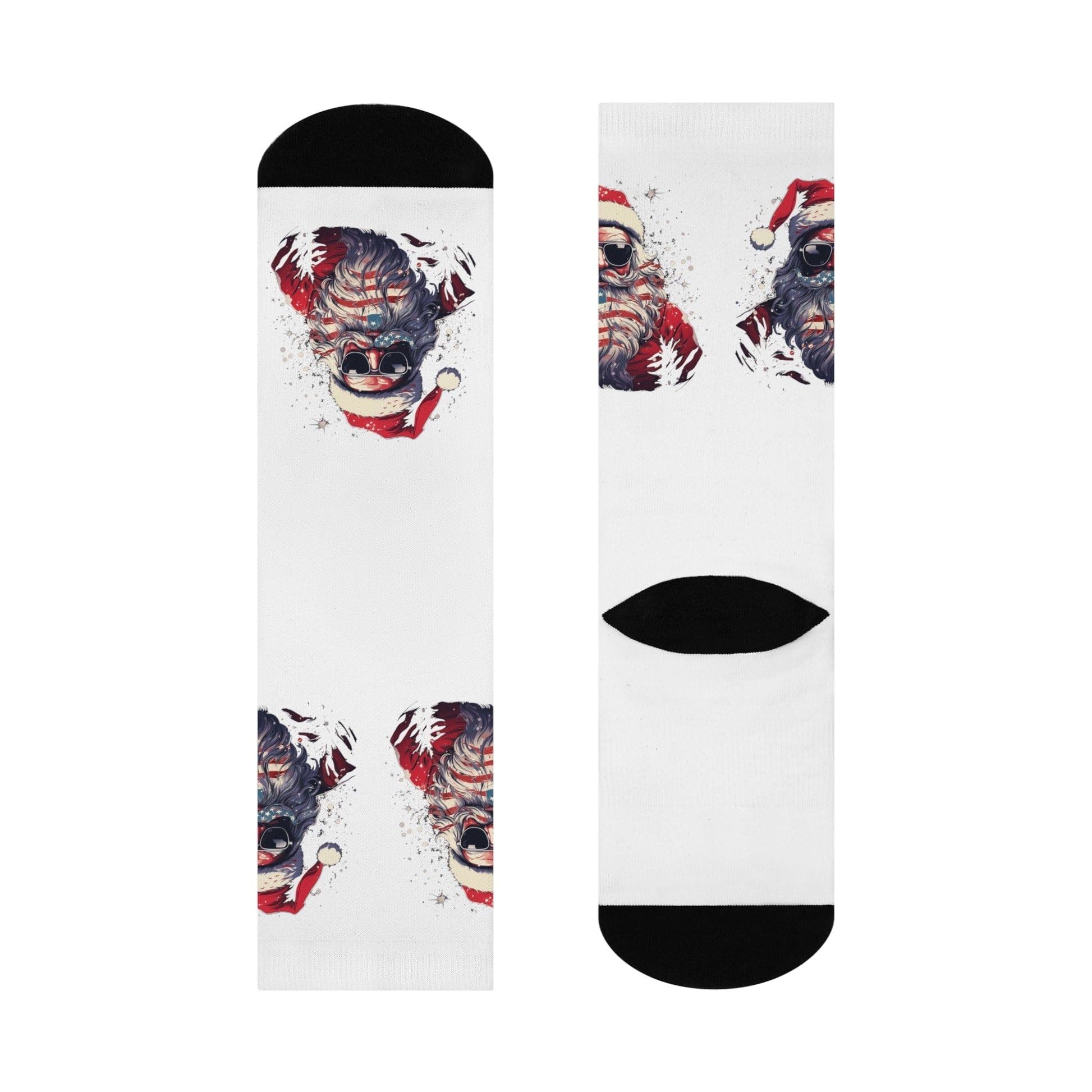 🧦 Patriotic Santa Cushioned Crew Socks - Red White and Yuletide Series