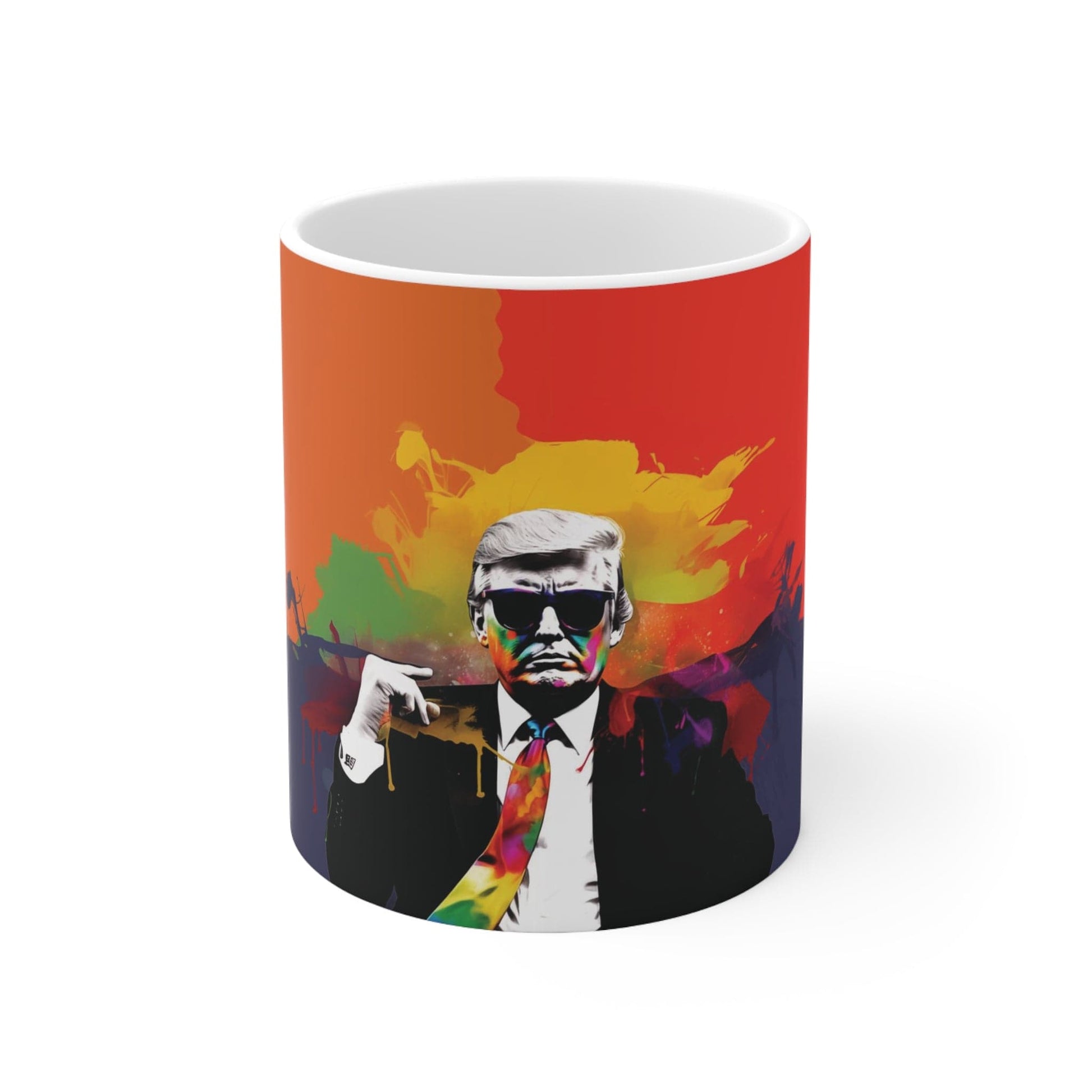 Stylish Sips with Iconic Imagery Begin your mornings with "Trump Shades 2 of 4," a standout piece from our Pop Art Series. This 11oz coffee mug blends political pop culture with artistic flair, featuring Trump in his signature shades set against a backdrop of vibrant colors. ☕🌈