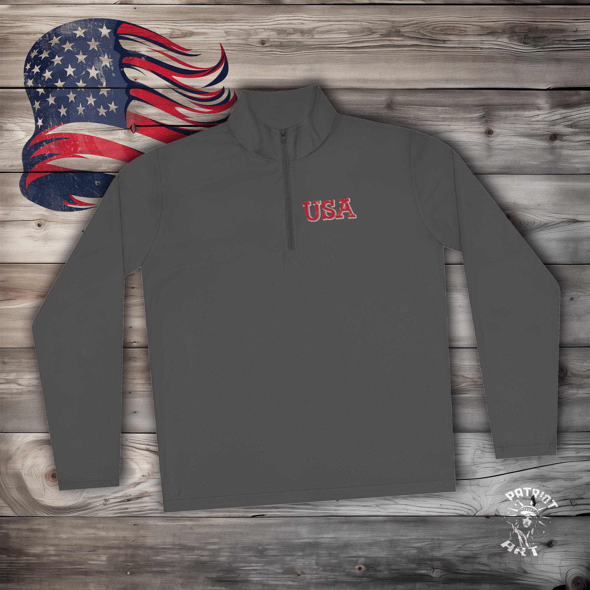 Direct-to-Film Printing: We use the direct-to-film printing method to ensure the highest-quality, long-lasting designs. Upgrade your wardrobe with this American Flag Quarter Zip Pullover, perfect for showcasing your love for the USA.
